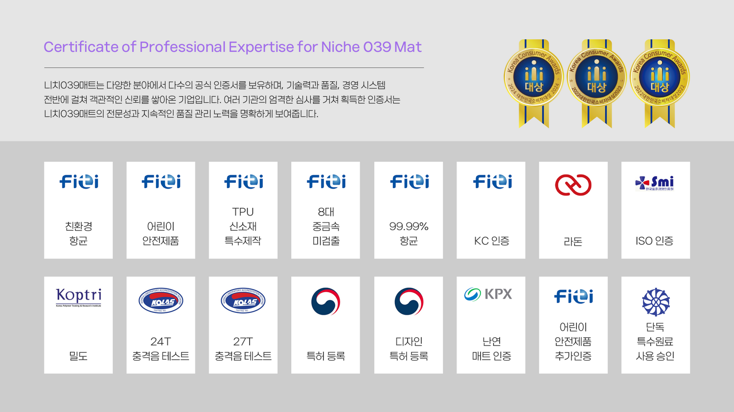 니치039매트 특허/인증